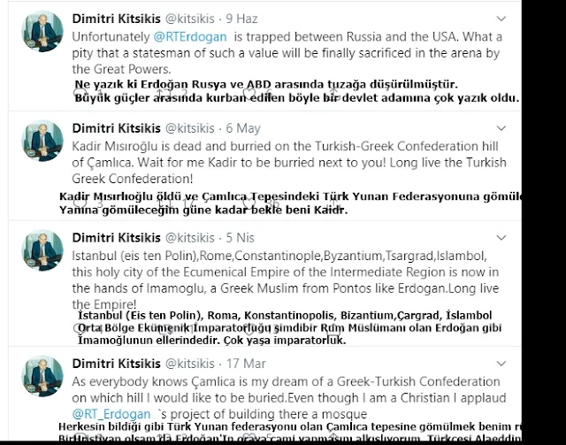 | Dimtri Kitsikis tweetlerinde Türkiye adına bir çıkar yoktur, göz boyamadır. |